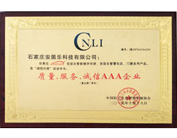 • 質量 服務 誠信3A企業證書