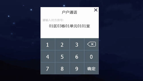 1)輸入對方房號進行戶戶通話,數字鍵輸入房號, X 刪除錯誤輸入,確認后呼出,例如呼叫1區1棟1單元101戶業主,如圖3.2.1: