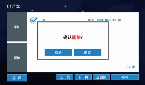 2)刪除聯系人,點擊刪除可刪除選定聯系人,同時支持呼叫和全刪除功能,如圖3.2.4.2: