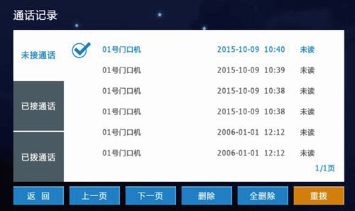通過重撥來回撥選中的設備,也可通話刪除與全刪除來刪除記錄,如圖3.4.5: