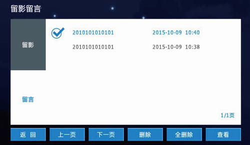 2)點擊查看按鈕可查看留影與留言的內容,可通話刪除和全刪除來進行刪除操作。
