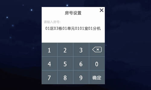 1)設置當前設備的房號,包括XX區XX棟XX單元XXXX室XX分機等信息,例如設置為01區03棟01單元0101室01分機,點擊確定保存,如圖3.8.3: