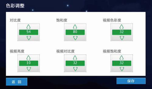 1)可設置屏幕的對比度、飽和度、視頻色彩度,通信視頻流的亮度、對比度、飽和度,參數的設置范圍為1-100,如圖3.8.8: