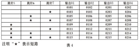 注:該表是樓層號的設置,打“★”表示該跳針短路(短路即是插針帽兩針插上)兩層共用一個解碼器的房間號編碼表如下表4所示: