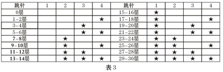 在待機狀態下在主機輸入#0000200302這個指令,主機進入兩層共用一個解碼器的標準房號編碼狀態,解碼器樓層號編碼表,如下表3所示: