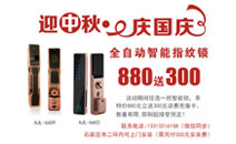 迎中秋慶國慶智能鎖促銷活動,活動期間任選一把智能鎖(AJL-6602、AJL-6609),享特價880元立送300元話費充值卡。... More>>